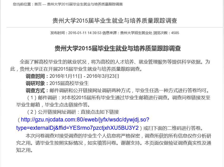圖1 貴州大學(xué)2015屆畢業(yè)生就業(yè)與培養(yǎng)質(zhì)量跟蹤調(diào)查