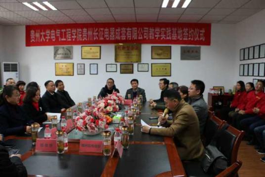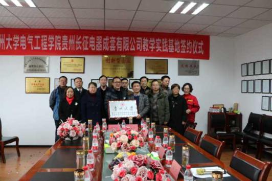 2018年12月25日,貴州大學3522集團新網站與貴州長征電器成套有限公司教學實踐基地簽約暨授牌揭牌儀式在長征電器公司順利舉行。茍江經開區黨工委副書記、管委會副主任羅明乾,播州區政協副主席王倫,播州區工商聯主席、區總商會會長李練旭,播州區科技局局長王波,貴州大學3522集團新網站院長李澤滔、吳欽木副院長、自動化系主任楊靖、自動化系何志琴教授等出席了這次簽約儀式。