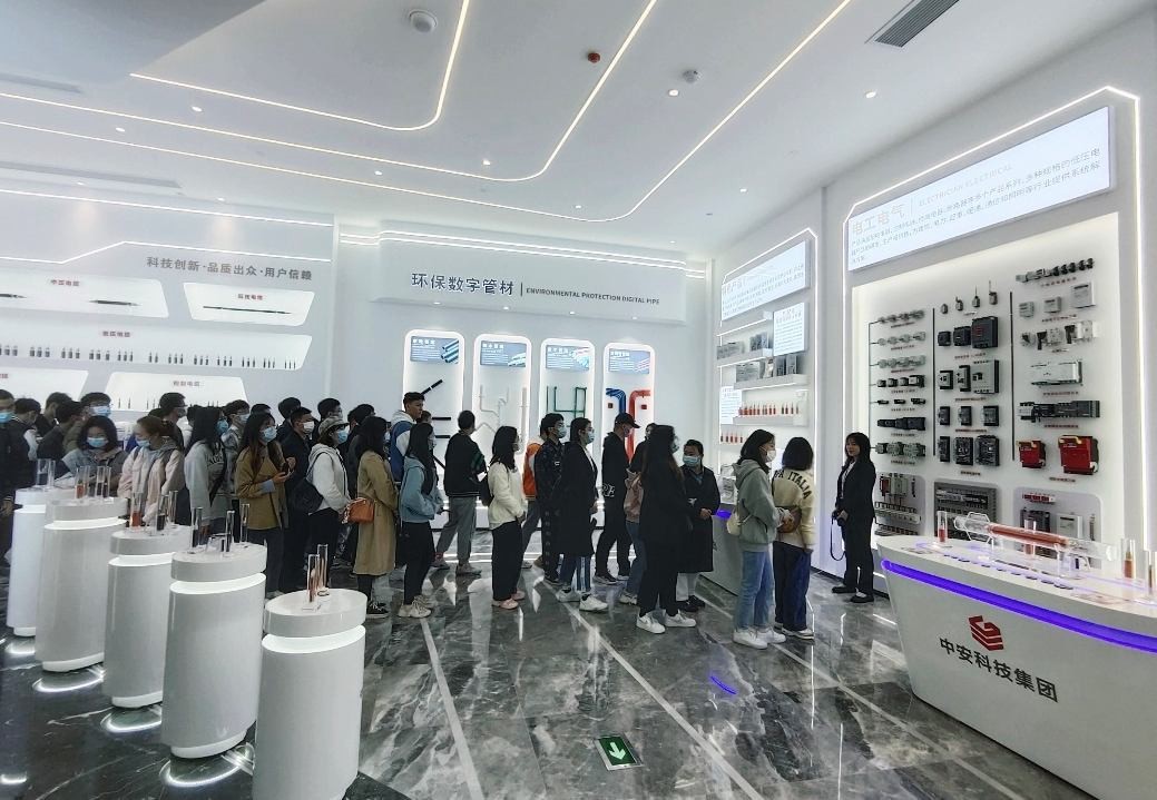 隨后,中安科技集團(tuán)宣傳部帶領(lǐng)學(xué)生到線纜科技展廳、智能化生產(chǎn)車車間現(xiàn)場(chǎng)進(jìn)行參觀學(xué)習(xí)。