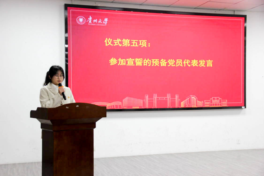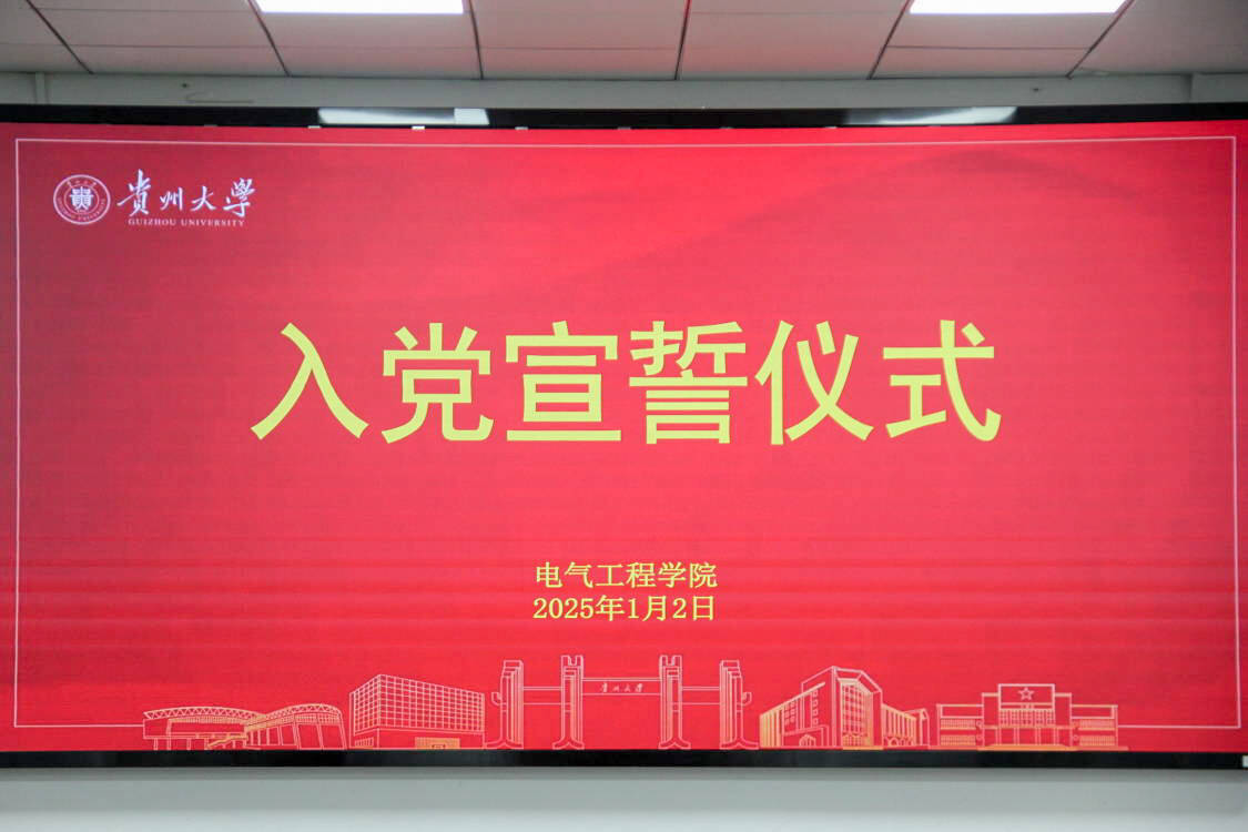 2025年1月2日下午,學(xué)院于電工樓609會(huì)議室舉辦新黨員入黨宣誓儀式。宣誓儀式由學(xué)院輔導(dǎo)員余紅主持,貴州大學(xué)正處級(jí)組織員侯亞兵、學(xué)院黨委副書記趙曉丹、學(xué)院學(xué)生科科長(zhǎng)、輔導(dǎo)員陳倩出席,2024年下半年接收的全體預(yù)備黨員參加宣誓儀式。