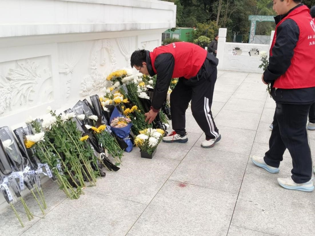 11時許,祭掃儀式在解放貴州革命烈士紀念碑前莊嚴舉行。全體人員肅立默哀,30名志愿者手捧素菊組成“豐碑”造型,以當代青年特有的儀式語言致敬先烈。既保留傳統(tǒng)祭祀的情感溫度,又體現低碳環(huán)保的現代文明理念。