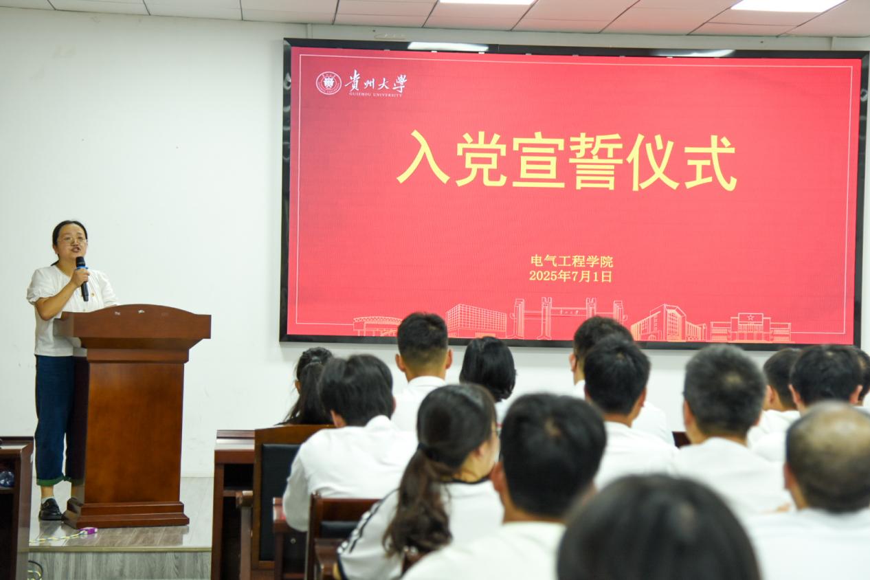 2025年7月1日中午,學(xué)院黨委于電工樓609會(huì)議室隆重舉行新黨員入黨宣誓儀式。儀式由學(xué)生科科長(zhǎng)陳倩主持,學(xué)院黨委書記劉明鋒、正處級(jí)組織員侯亞兵、黨委副書記趙曉丹、學(xué)院關(guān)工委成員李小平等老黨員代表、2025年上半年入黨的38名預(yù)備黨員參加。