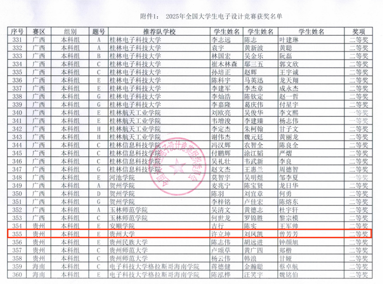 該賽事是教育部和工業和信息化部共同發起的大學生學科競賽之一,自1994年全國大學生電子設計競賽創辦以來,大賽參賽學生增長到每年的4萬人左右,被譽為“電子類學科競賽的奧林匹克”,在高校電子信息類專業中具有極高認可度。中國規模最大、參賽范圍最廣、極具影響力的針對在校本專科大學生的TI競賽,我院學子在2025年全國大學生電子設計竟賽中首次進入國賽,榮獲全國總決賽二等獎。參賽學生:許立坤、劉鳳凱、曾芳芳,指導老師:覃濤、何志琴。