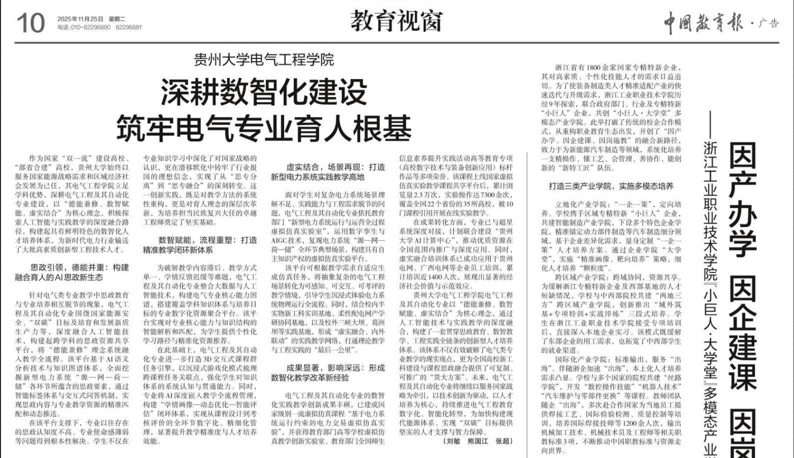 轉載《中國教育報:深耕數智化建設筑牢電氣專業育人根基》